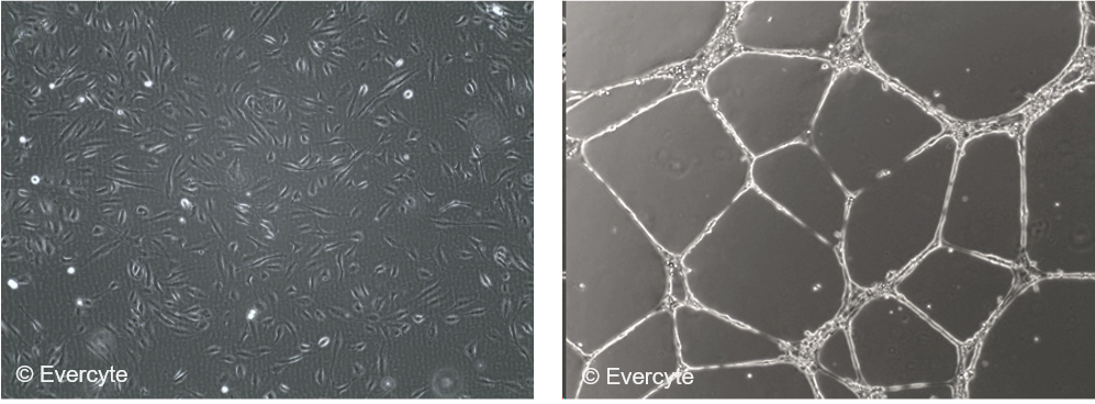Evercyte’s human dermal microvascular endothelial cell line (lymphatic origin) HDMVEC/TERT164-B can be grown without limitations while maintaining expression of cell type-specific markers and function. Therefore, these cells are useful for setting up in vitro bioassays for studying angiogenesis in disorders involving the lymphatic system such as wound healing or metastasis as well as bioassays for testing the angiogenic properties of novel drugs. Additionally, the cell line is the perfect starting material for genetic engineering to create important disease models.