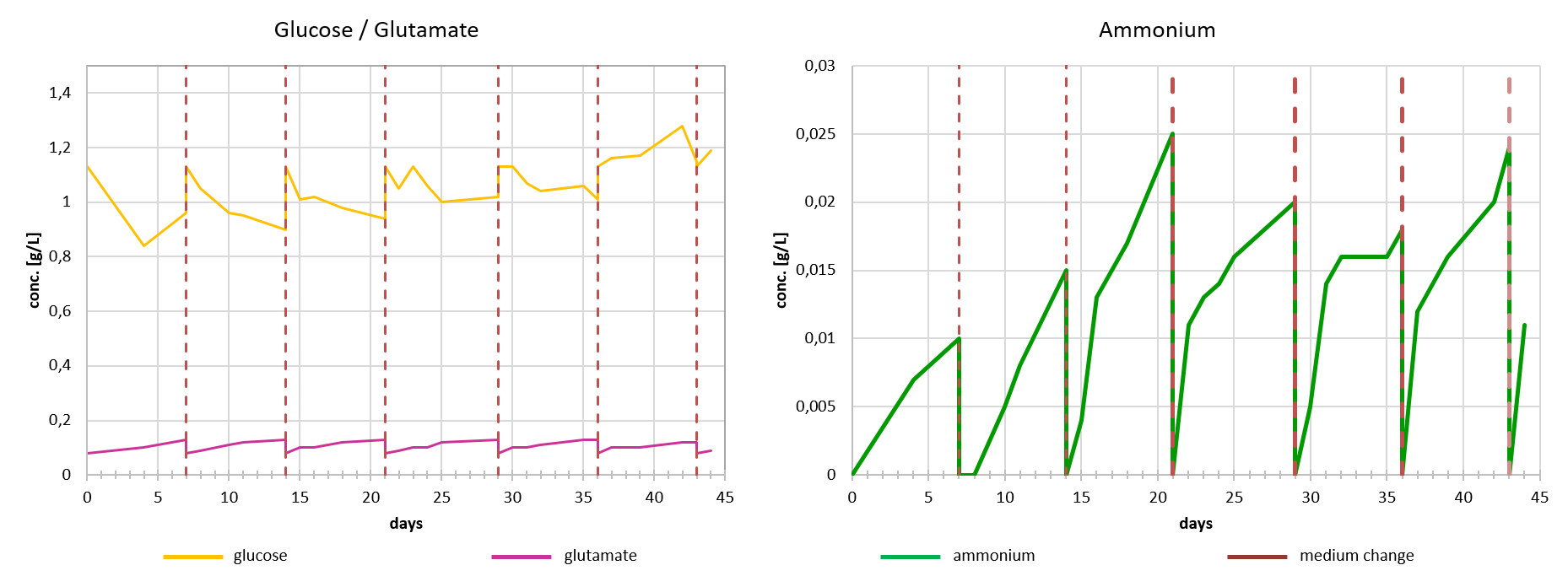 monitoring glucose / glutamine consumtion and accumulation of metabolites